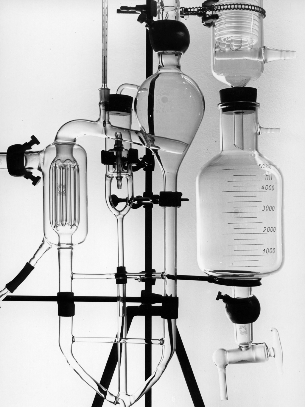 The contacts he made with the French Surrealists during his art studies in Paris, as well as his technical interests and know-how, also influenced his fine-art work. Among the best-known of these are his Rhythmograms, Lissajous figures he created with a specially constructed light pendulum machine, and his image series, Kleid aus Licht (Dress of Light), for which he used a light cannon to project circular and oval shapes onto the bare skin of a female nude. According to Rolf Sachsse, professor of design theory and history, Heidersberger’s work is characterized by an interest in the “entire production process” and not just in the final “result, which then might become a permanent museum object in its own right.” This is proof enough that the photographer is a “modernist, a true avant-gardist—and you can’t get any better than that in the twentieth century.”