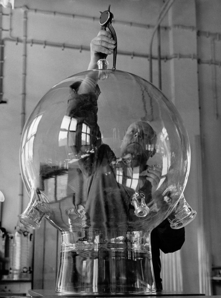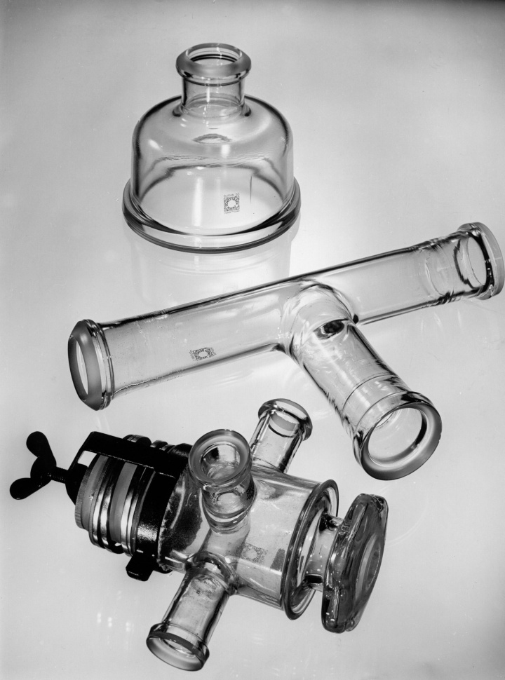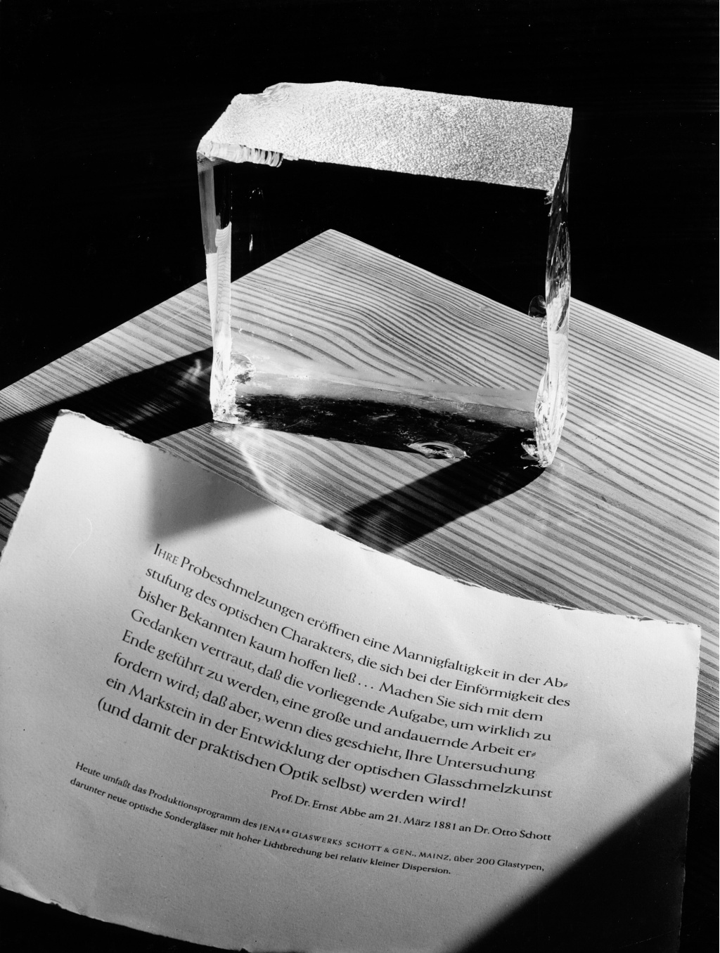 Mit seinen Fotografien vom neuen Stammsitz der Jenaer Glaswerke Schott & Gen. in Mainz scheint Heidersberger weit mehr als nur einem Auftrag zur Werbe- und Industriefotografie nachgekommen zu sein. Er inszenierte die gewaltigen Produktionsanlagen bei Tageslicht wie bei Vollmond, bannte den auf Hochglanz polierten Messestand auf Fotopapier und lichtete Teile der Produktpalette für den Haushalt wie auch die für die Industrie ab - von der gläsernen Teekanne nach dem Entwurf des Designers Heinrich Löffelhardt über Glasgeschirr bis hin zum Babyfläschchen, von Laborgläsern aus Borosilikatglas bis hin zu Glasröhrensystemen für die Pharmazie. Darüber hinaus hält er einzelne Arbeitsschritte wie auch die kunstfertige Arbeit der Glasbläserinnen und Glasbläser im Stile eines Reportagefotografen fest. Einzelne Portraits seiner 1956 in Mainz gemachten Aufnahmen erinnern fast an solche August Sanders aus dessen berühmter Serie Menschen des 20. Jahrhunderts.