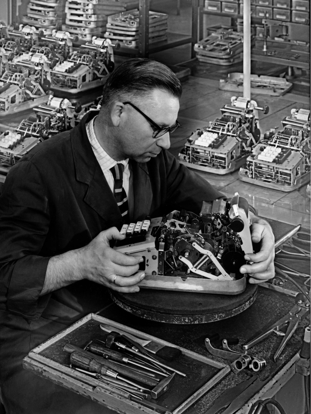 When Heinrich Heidersberger moved to Braunschweig in the early 1950s, he had long been a sought-after architectural, industrial and, not least, advertising photographer. It comes as no surprise then that he was repeatedly hired by Brunsviga Maschinenwerke AG, based in Löwenstadt, before it was absorbed by Olympiawerke AG at the end of the decade due tocapital-intensive modernizations.